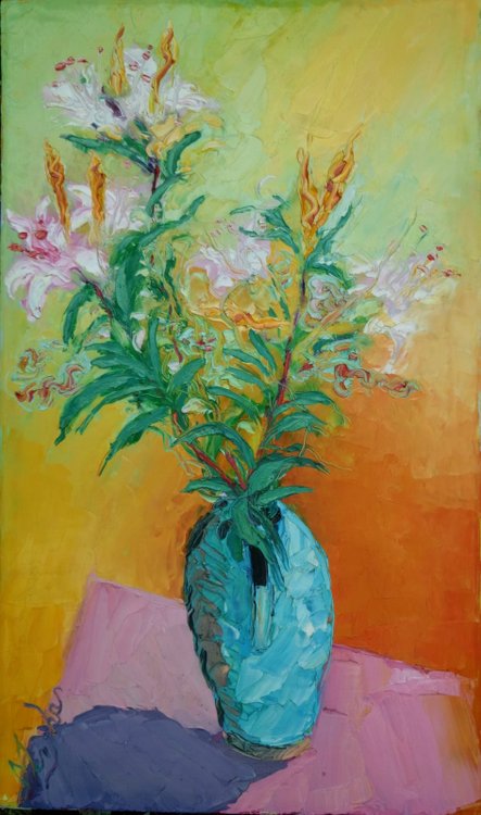LILIES IN A BLUE VASE by MICHAEL MONAGHAN, Price: £2750.00