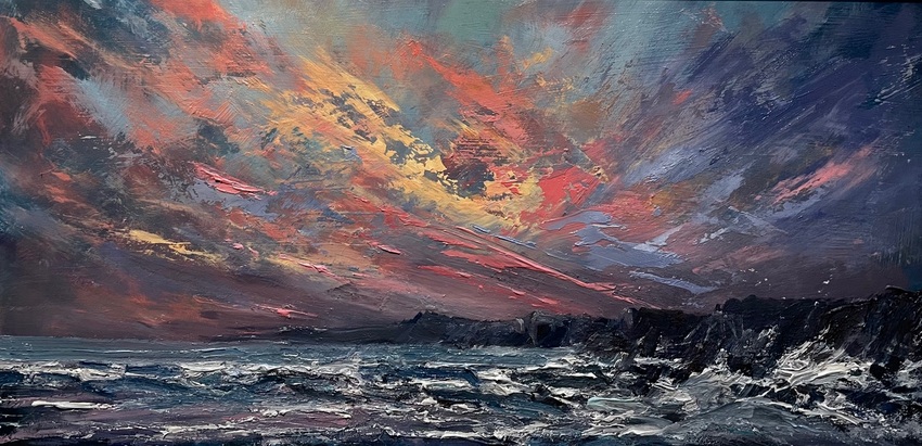 Since beginning his professional, artistic journey in 2019, his atmospheric representations of the rugged beauty of the Welsh coastline and countryside have exhibited in galleries across the country and continue to be a popular choice for collectors both throughout the UK and internationally.