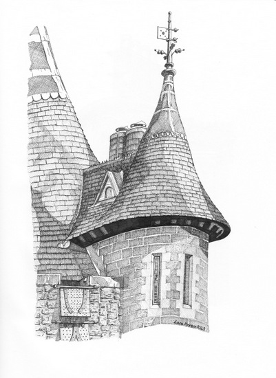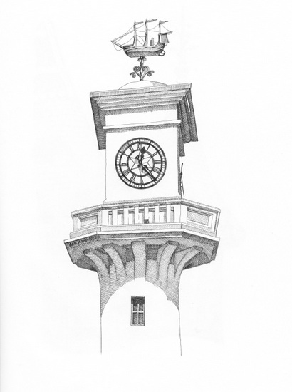 'My drawings are my way of capturing treasured memories from family days out, as well as appreciating architecture from around the world. I try to highlight the unusual or hidden details of buildings that people walk past every day without really noticing. I am always very drawn to chimneys and towers for some reason! The craftmanship and design of every feature deserves to be appreciated, and my static, highly detailed drawings give people a chance to stop and take the time to absorb these intricate aspects that they might never have otherwise noticed. I work predominantly in fineline pen and, in my more extravagent works, with watercolours. I have no formal artistic training; it is simply my therapeutic way of combining my passion for art and architecture. In particular I enjoy focusing on the places in South Wales I've repeatedly enjoyed over the past forty years, and which I now have the pleasure of sharing with my young daughter.'